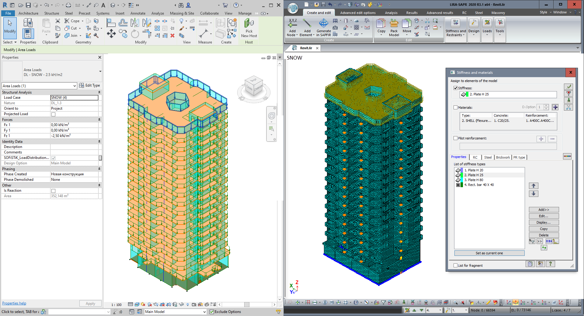 - Analytical model is imported from Revit to LIRA-FEM program where the strength analysis will be carried out.
