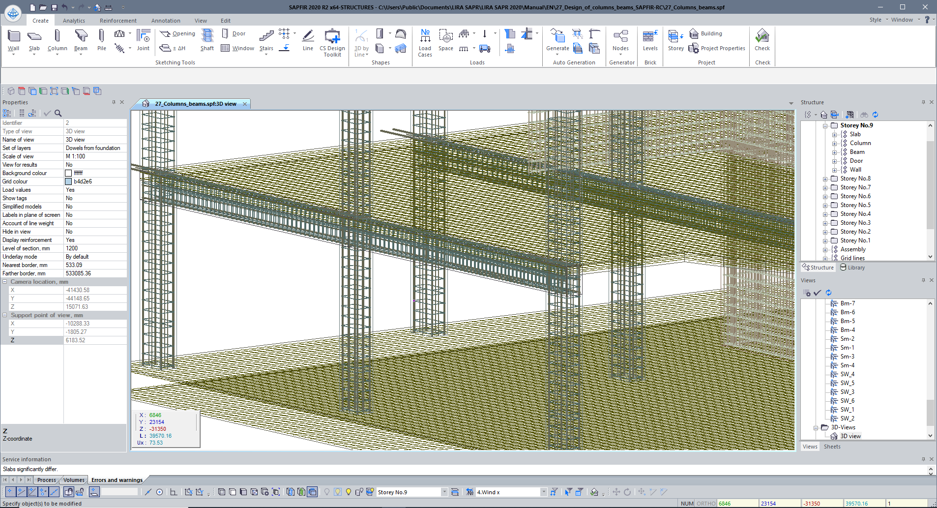Design of RC structures design software enables the user to design and obtain working drawings of reinforcement, specification of reinforcement, bill of materials and list of elements for floor slabs, diaphragms, columns and beams.