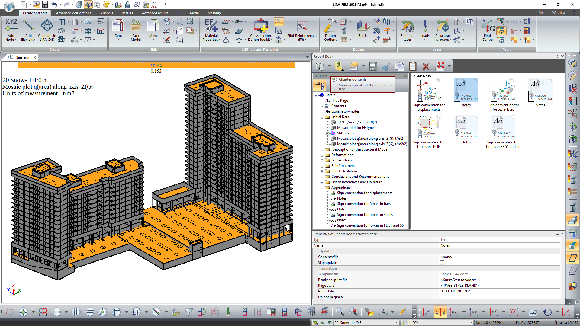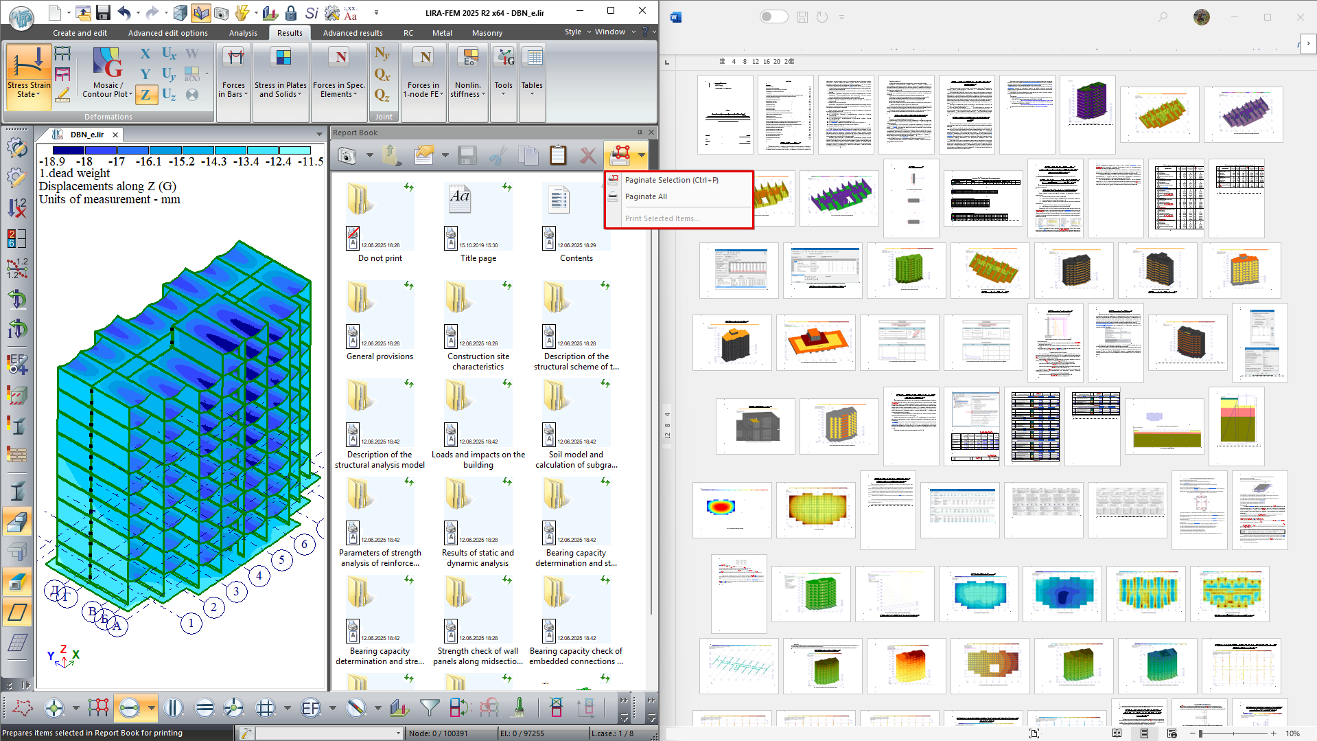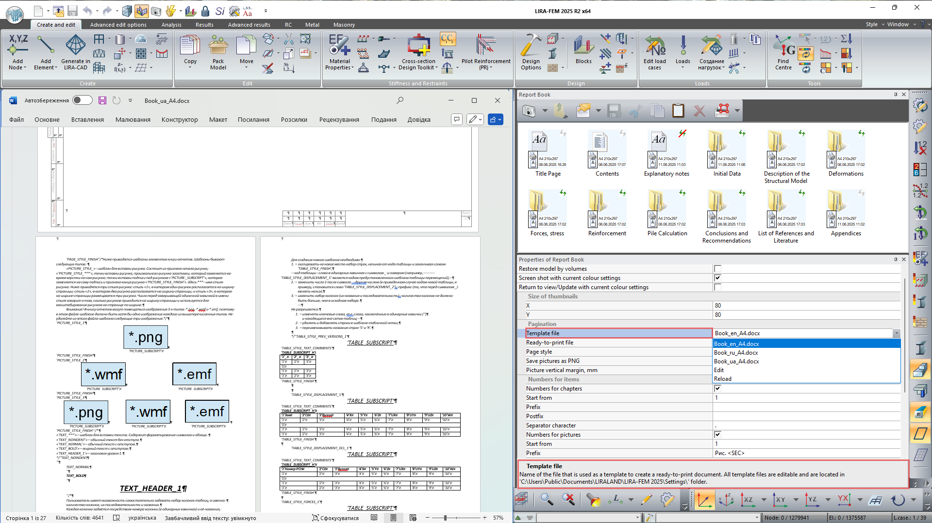 Report Book is a tool for creating complete, structured technical documentation based on analysis results obtained in LIRA-FEM program. The title page, table of contents, structured chapters, interactive screenshots, and tables are all automatically generated in the system.