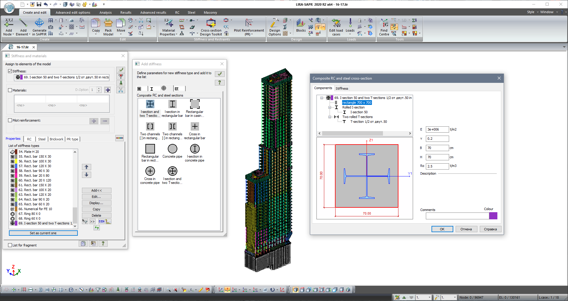 Analysis of composite structures in LIRA-FEM.