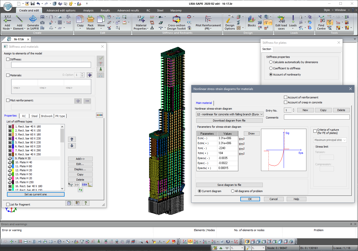 colour model (background colour for working window, colours for composite elements and objects of design model, colour palette for contour plots of analysis results);