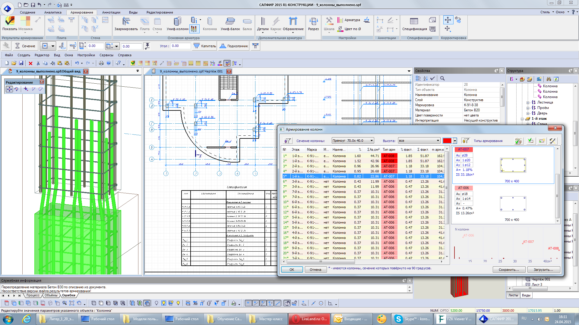 The material and texture libraries contain not only the physical and mechanical properties of materials, but also the necessary design parameters and structural requirements for further analysis of reinforcement in VISOR-SAPR module.