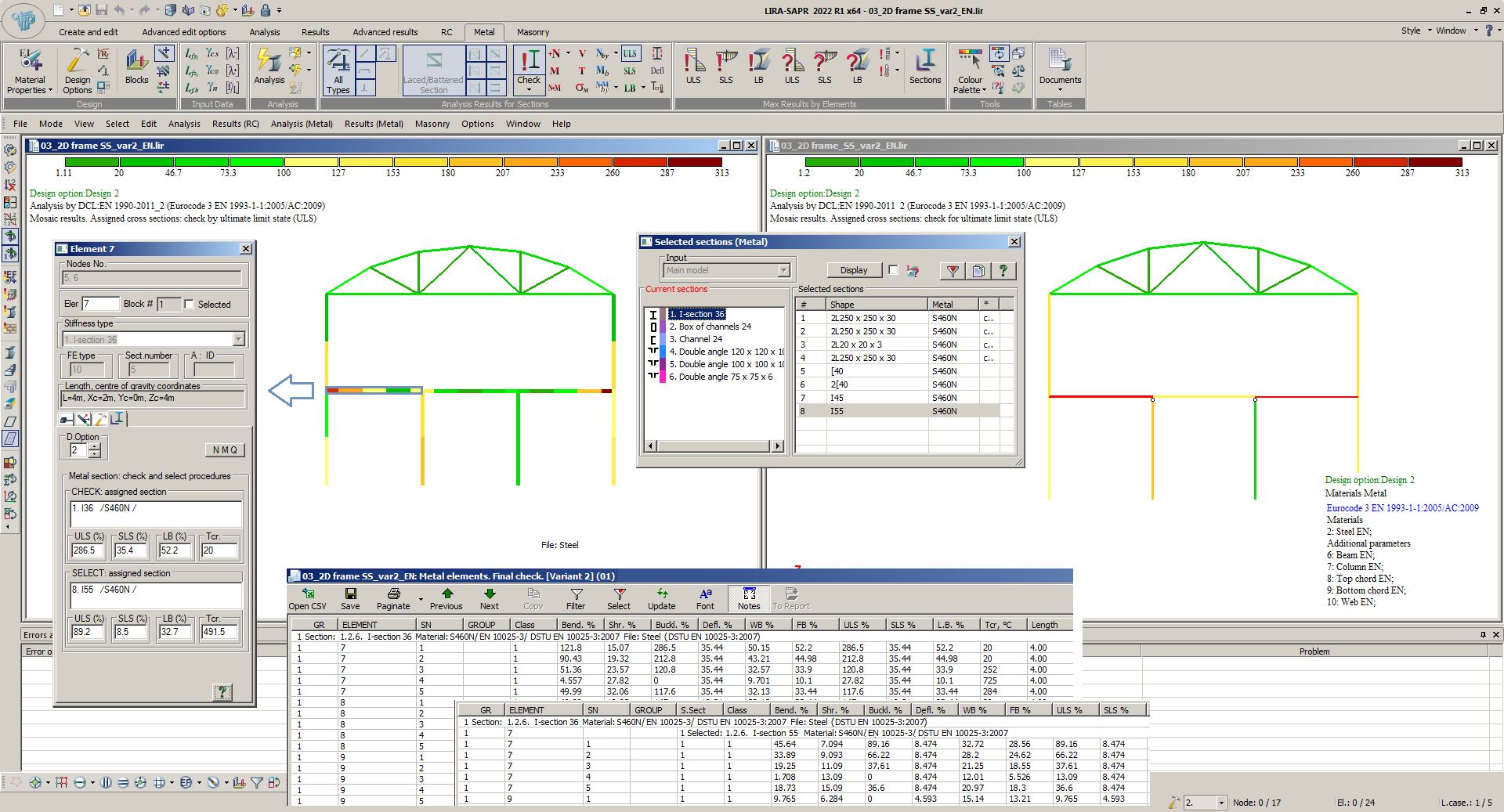 STC allows to check and select steel section of one element separately from the whole design scheme.
