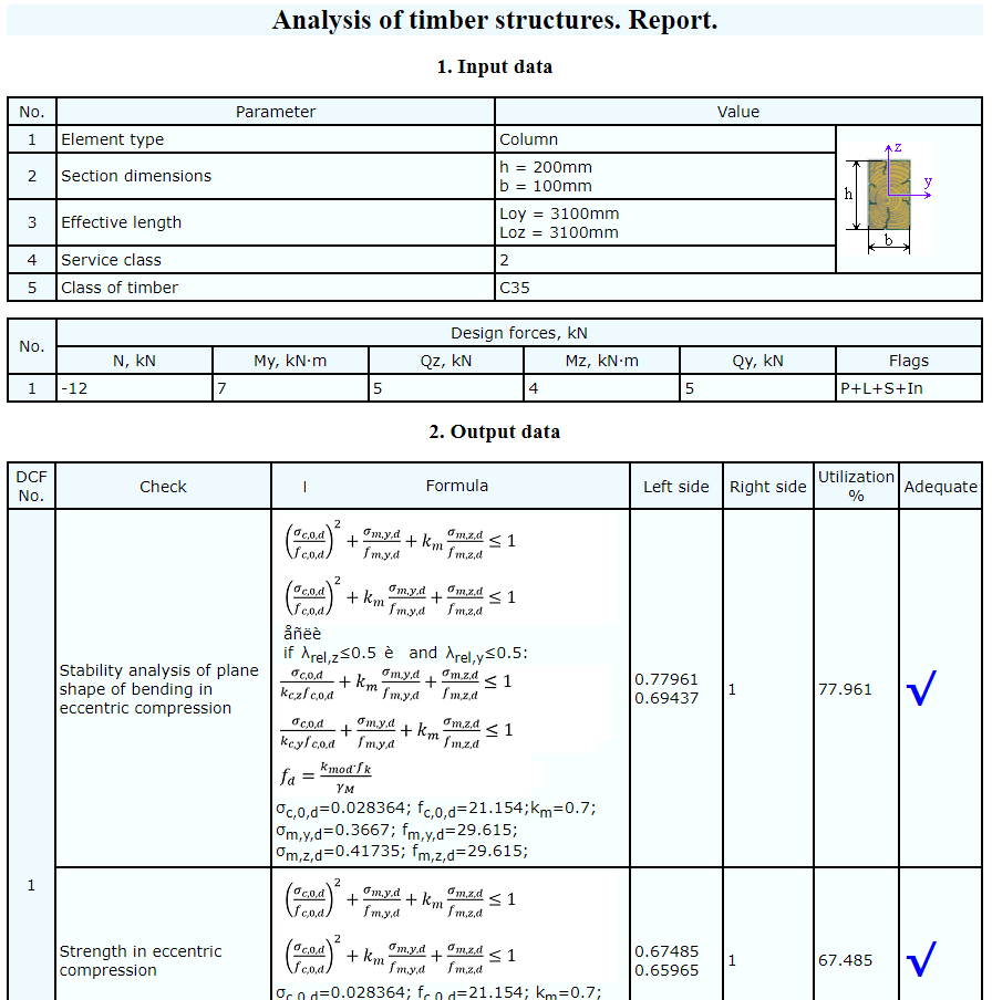 Checks for cross-sections in analysis of timber structures according to Eurocode 5