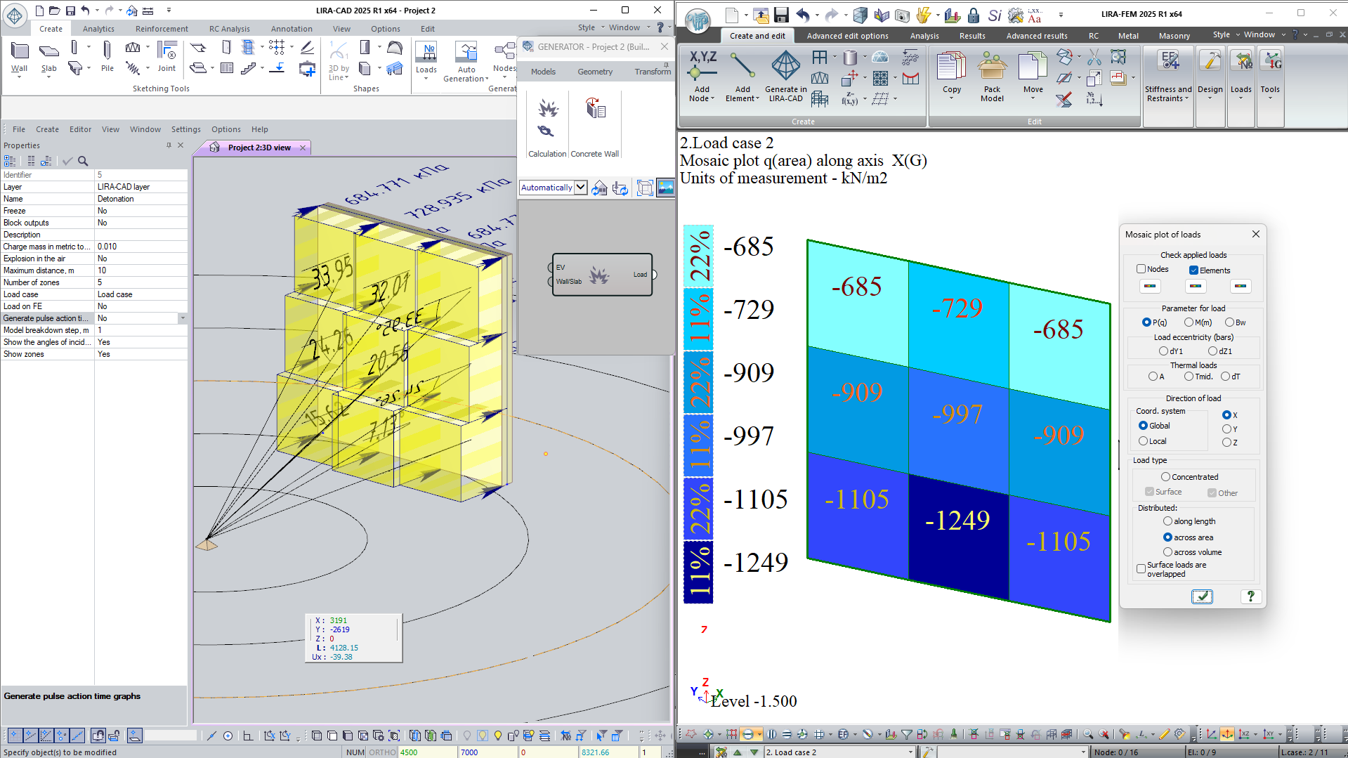 The LIRA-FEM software implements the blast analysis of buildings. It includes:
