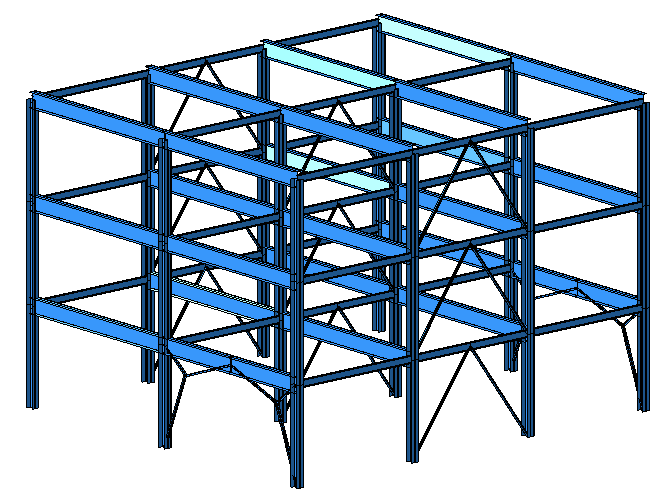 It is possible to perform an analysis of spacial frame in LIRA-FEM. The software implements both linear and non-linear analysis of spacial frames. The results of the spatial frame analysis are the forces in the bars and the stresses in the plates in all directions.