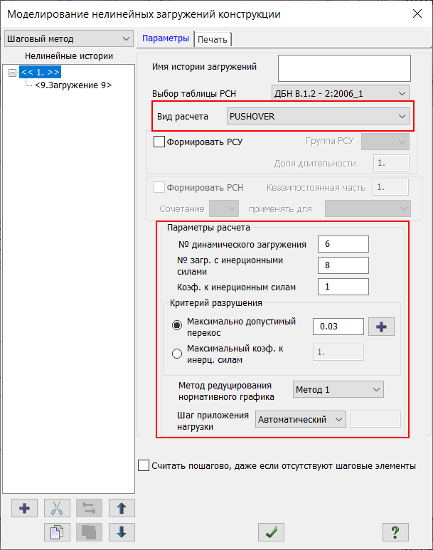 LIRA-FEM program implements Universal Pushover Analysis for multi-mass design model.